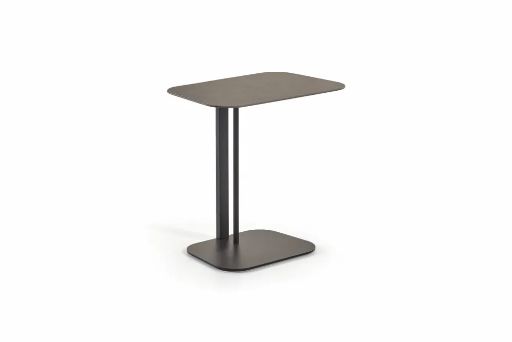 Le "Yuzu" se distingue par son design minimaliste et épuré. Son plateau rectangulaire aux bords doux et son piètement fin et stable sont réalisés dans un coloris gris foncé ou noir, lui conférant une allure résolument moderne. Sa conception intelligente permet de le positionner idéalement pour avoir tout à portée de main sans encombrer l'espace.