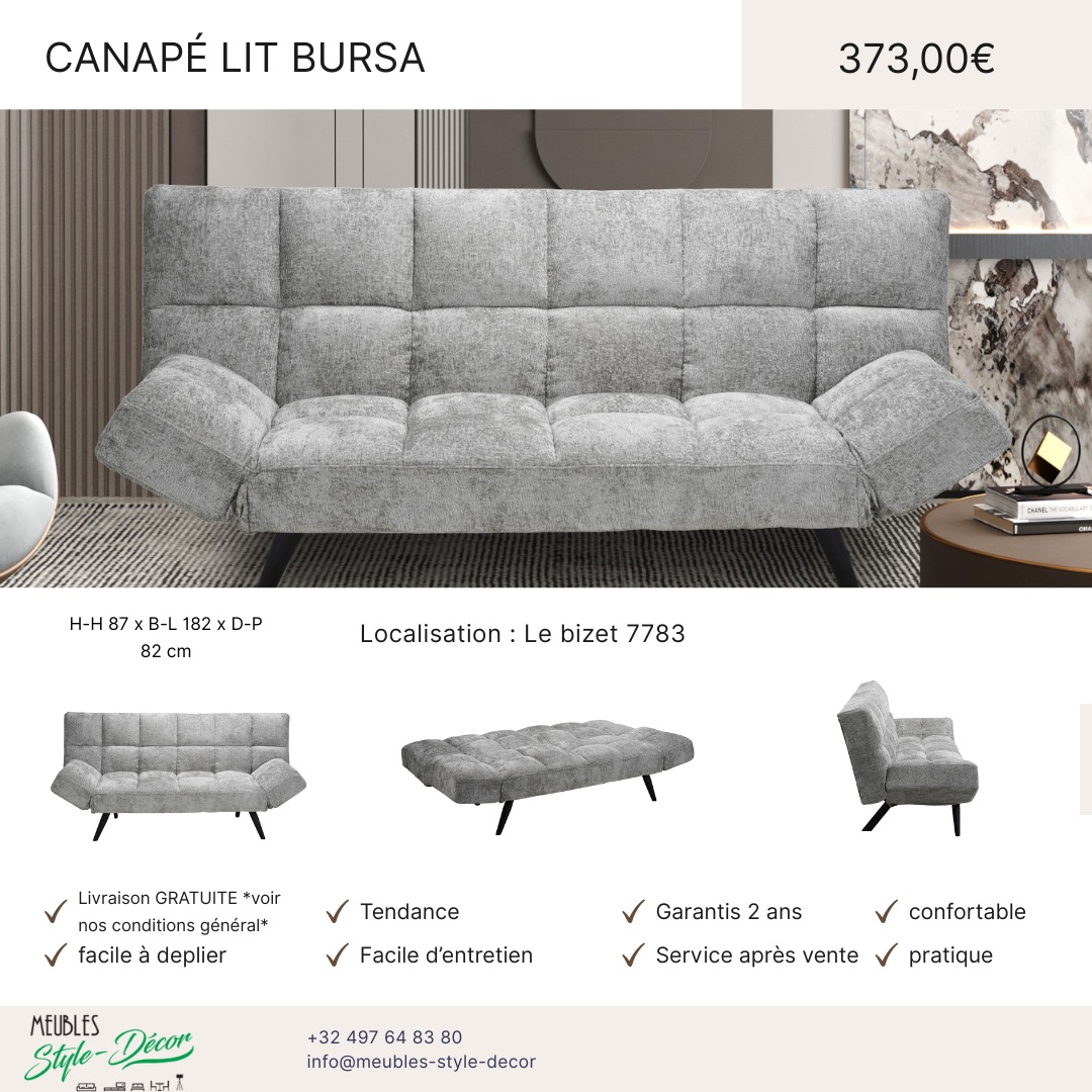 Ne manquez pas l'occasion de découvrir notre canapé lit gris et bien d'autres meubles de qualité à des prix imbattables. Pour plus d'informations ou pour toute demande de devis, n'hésitez pas à nous contacter. Faites-vous plaisir à petit prix avec SRL MEUBLES STYLE-DECOR !