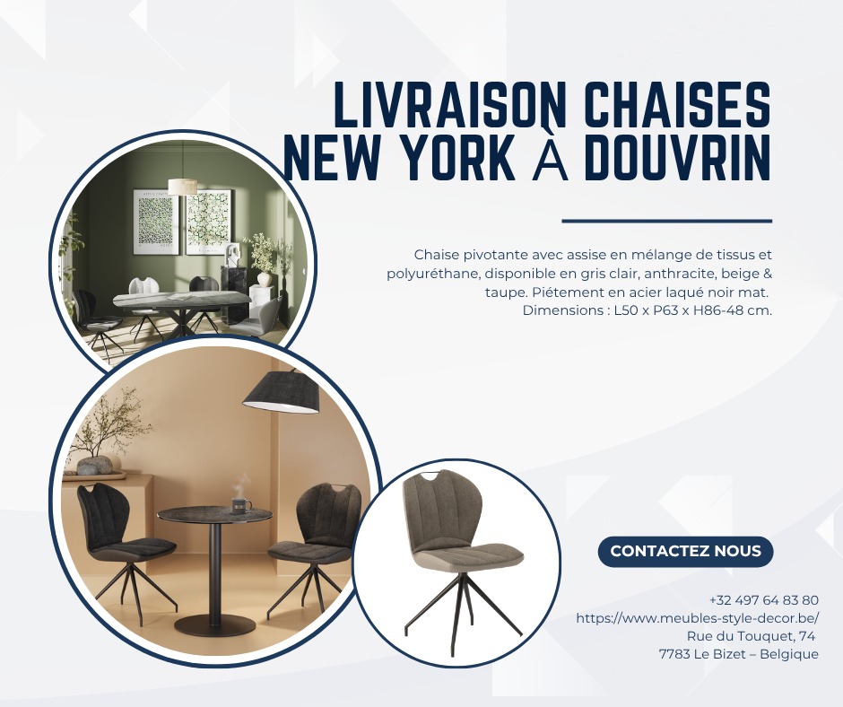 Chez SRL MEUBLES STYLE-DECOR, votre magasin de décoration et d'ameublement situé à Comines-Warneton, nous sommes heureux de vous présenter notre nouveauté : la chaise New York disponible à Douvrin. Ce modèle élégant et moderne sera disponible début août 2025 et se décline en plusieurs coloris raffinés : blanc cassé, beige, bleu marine, anthracite, gris clair, ocre, terracotta et vert sapin.