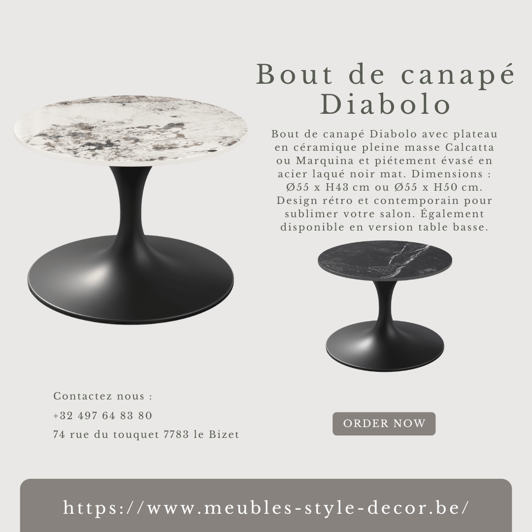 Chez SRL MEUBLES STYLE-DECOR, votre magasin de décoration et d'ameublement à Comines-Warneton, nous sommes fiers de vous présenter notre dernière nouveauté : le bout de canapé diabolos. Cette pièce unique, au design intemporel, est parfaite pour sublimer votre salon avec une touche de modernité et de simplicité.