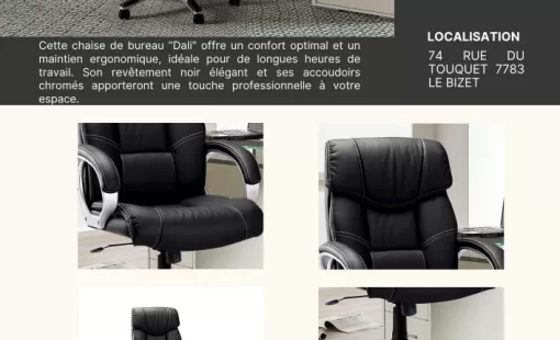 Optimisez votre productivité et votre bien-être avec la chaise de bureau "Dali", conçue pour vous accompagner durant de longues heures de travail. Son design soigné combine esthétique et…