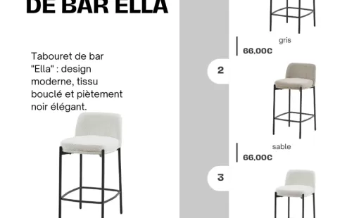 Sublimez votre espace cuisine ou votre coin bar avec le tabouret "Ella", une pièce de design qui ne manquera pas d'attirer les regards. Ce tabouret incarne l'alliance parfaite entre une esthétique…
