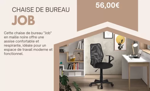 Optez pour la chaise de bureau "Job" et transformez votre espace de travail en un lieu alliant efficacité et bien-être. Conçue pour offrir un soutien optimal, cette chaise est l'alliée parfaite pour…