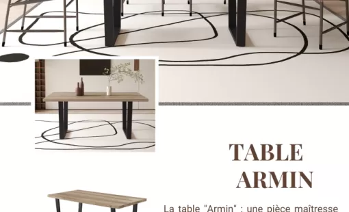 Apportez style et convivialité à votre salle à manger avec la table "ARMIN". Son design contemporain, caractérisé par l'alliance réussie d'un plateau spacieux à l'effet bois clair et de pieds…