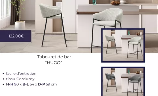 Découvrez le tabouret de bar "HUGO", la touche de modernité et de confort qu'il manquait à votre cuisine ou votre espace bar. Son design contemporain, alliant des lignes épurées et un piètement noir…