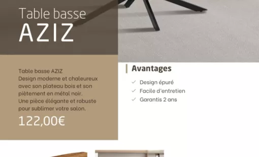Apportez du caractère à votre salon avec la table basse AZIZ, un modèle qui allie sobriété et chaleur grâce à son…
